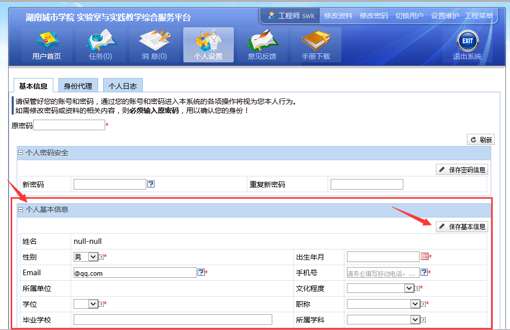 在个人基本信息栏中维护个人信息,保存即可
